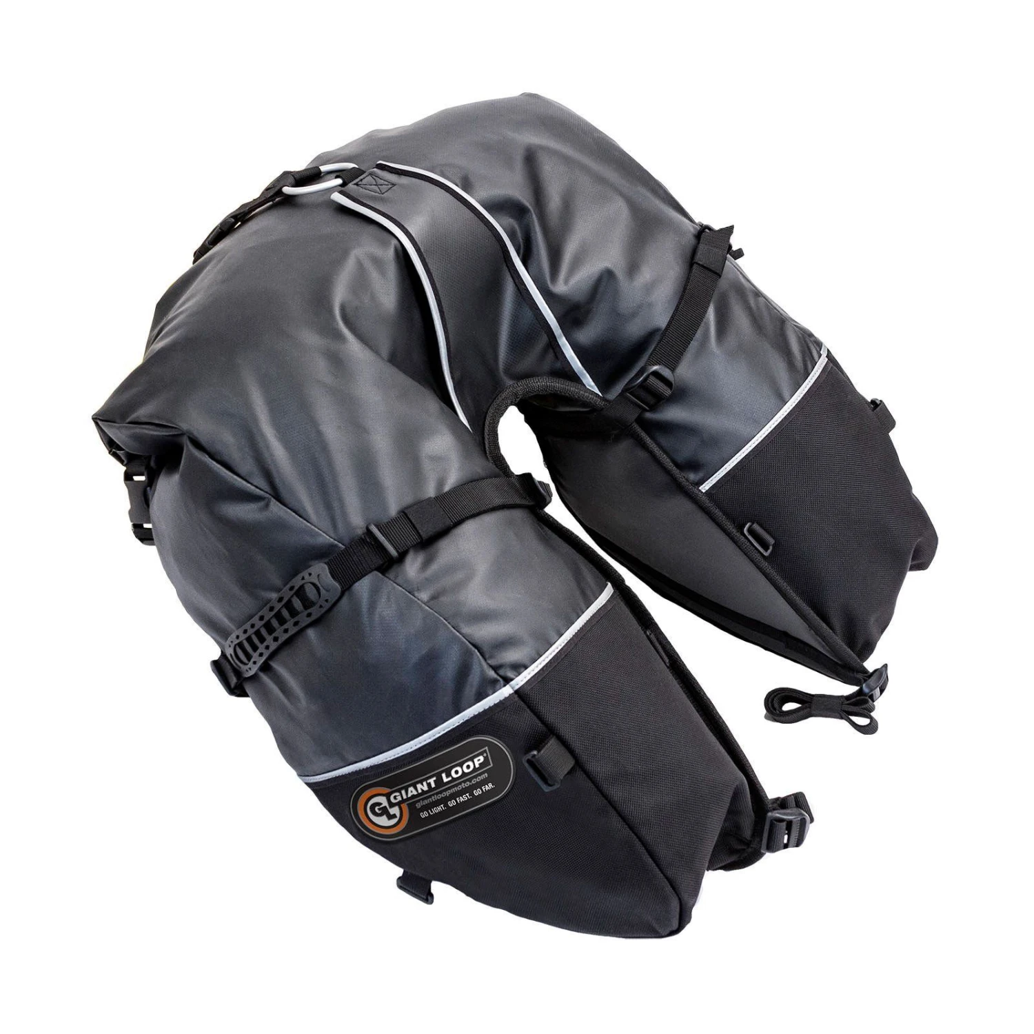 Lightweight Bomb Shell™ construction and materials mean the Coyote is built for long-term durability. It includes three RF-welded waterproof inner liners Saddlebag Dry Pods™ with air release valves to keep everything dry and organized. Giant Loop’s adventure proof packing system allows the Coyote to be expanded for enhanced storage and accessibility by adding a Rogue Dry Bag™, Possibles Pouch™, or Tank Bag (each sold separately).