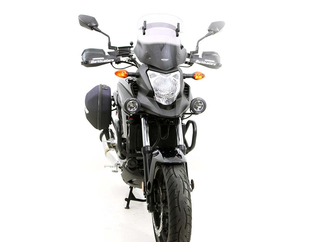 This vehicle specific driving light mount allows you to mount any DENALI driving light in the optimum location on your motorcycle. This kit includes beefy powder coated steel brackets with and M8 mounting hole and all necessary mounting hardware.Â