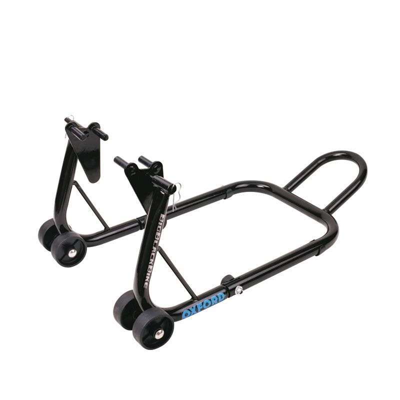 The Oxford Big Black Bike Paddock Stand is exactly as its name suggests. Available as both front and rear stand. The front stand has universal pins for the forks whilst the rear has a swingarm.