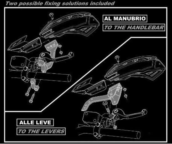 The only real universal handguard with 2 mount kits designed and manufactured by Racetech. These guards are configurable in 4 different versions in the same kit with great resistance, lightness and air exposition. Comes with a universal double fixing possibility (lever or handlebar) and adjustable in 3 side positions. Includes mount kits.