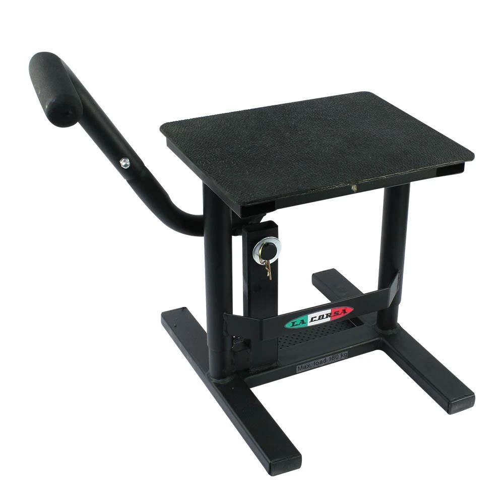 - Solid steel flat top motorcycle centre quick lift stand
